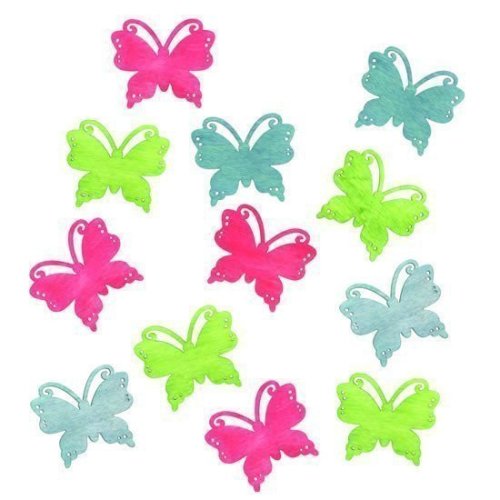 Drevení motýliky v jarných farbách sú určené na vytváranie dekorácií.