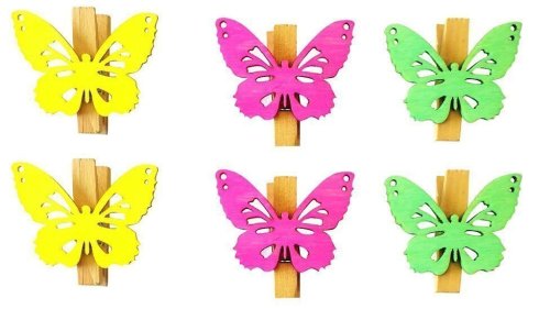 Drevení motýliky v jarných farbách. Vďaka kolíčku sa dajú všestranne použiť, napríklad krásne ozdobia jarné vence.