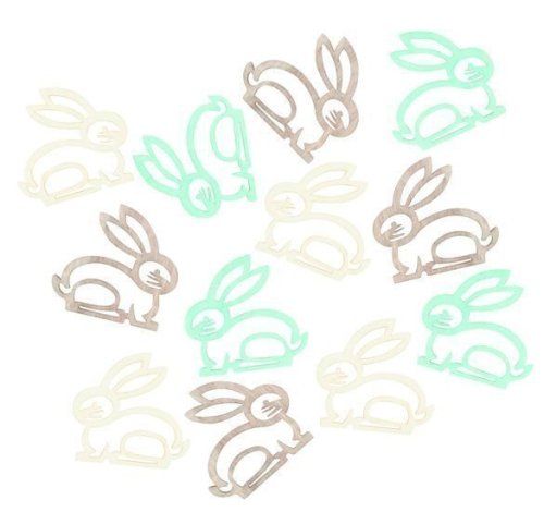 Drevené zajace v jemných odtieňoch sú určené na vytváranie dekorácií.