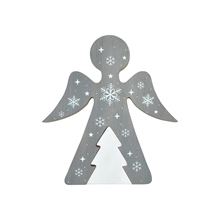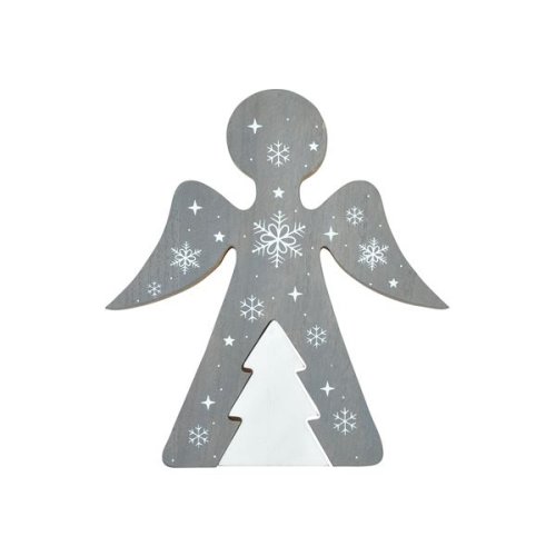 Drevená dekorácia anjel s bielym stromčekom dva v jednom