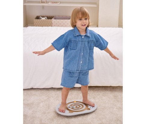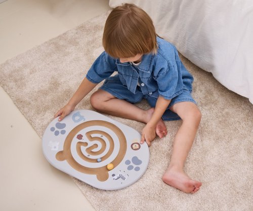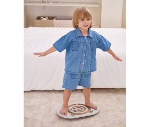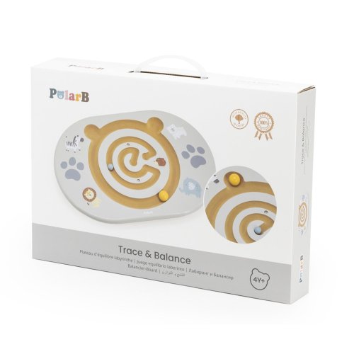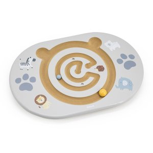Balansujúci labyrint je ideálna hračka pre deti od 4 rokov , ktorá podporuje rozvoj rovnováhy, pohybovej koordinácie a koncentrácie. Sada obsahuje balančnú dosku s vyfrézovaným labyrintom v tvare medvedíka a dve drevené guličky. Úlohou dieťaťa je pomocou balansovania posúvať guľôčku po dráhe, čím si hravou formou trénuje rovnováhu a kontrolu tela.