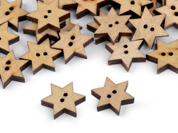 Drevené gombíky v tvare hviezdy využijete v scrapbookingu. Môžete s nimi ozdobiť rámčeky, priania, menovky, pozvánky, denníky a pod. Môžete ich použiť aj do kvetinových väzieb, ktoré sa tým krásne oživia. Gombíky sú balené v sáčku. Neodporúčame ich prať.