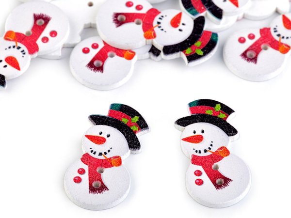 Drevené dekoračné gombíky v podobe snehuliaka sú roztomilou zimnou dekoráciou. Gombíky využijete na aranžovanie napr. sviatočného stola. Môžete ich nalepiť na drevené štipce. Využijete ich tiež v scrapbookingu, kde s nimi môžete ozdobiť rámčeky, priania, menovky, pozvánky, denníky a pod. Motív je jednostranný, z druhej strany sú gombíky biele. Gombíky sú balené v sáčku. Neodporúčame ich prať.