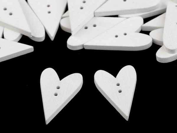 Drevené gombíky v tvare srdca využijete na dekoračné účely, prevažne pri scrapbookingu. Ozdobíte s nimi foto rámčeky, priania, menovky, pozvánky, denníky a pod. Môžete ich použiť aj do kvetinových väzieb, ktoré krásne oživia. Gombíky sú balené v sáčku. Neodporúčame ich prať. [V balení po 50 ks je 47 - 49 ks gombíkov.]