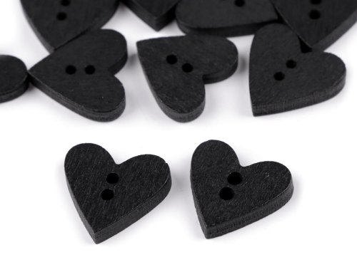 Drevený dekoračný gombík srdca - čierna (10 ks)