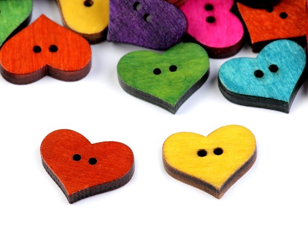 Drevené gombíky v tvare srdca urobia radosť hlavne zamilovaným či milovaným ľuďom. Využijete ich v scrapbookingu, kde s nimi môžete ozdobiť rámčeky, priania, menovky, pozvánky, denníky a pod. Možno ich použiť aj do kvetinových väzieb, ktoré sa tým krásne oživia. Gombíky sú balené v sáčku. Veľkosť gombíkov nájdete v tejto tabuľke. Pri styku s vodou púšťa farbu, preto ich neodporúčame prať.
