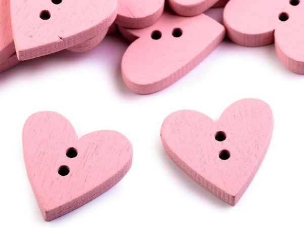 Drevený dekoračný gombík srdca - púdrová (50 ks)