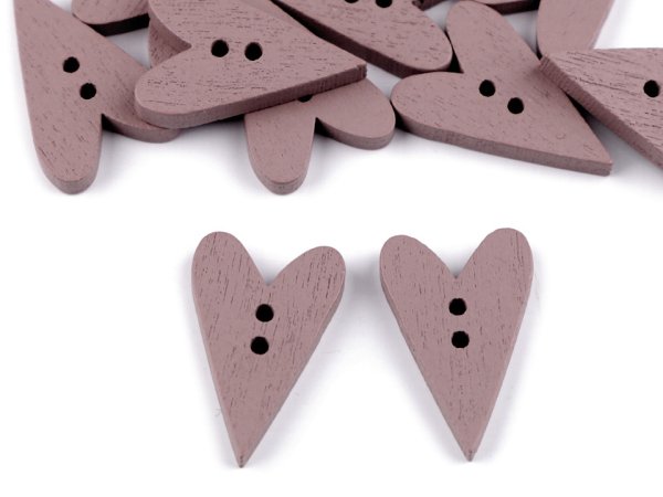 Drevený dekoračný gombík srdca - staroružová tmavá (10 ks)