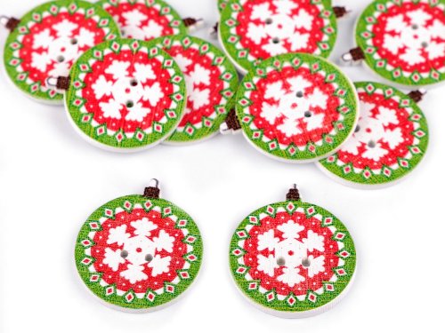 Drevené dekoračné gombíky s vianočnými motívmi. Na prvý pohľad vás zaujmú svojou detailnou farebnou potlačou. Gombíky využijete na aranžovanie napr. sviatočného stola. Môžete ich nalepiť na drevené štipce. Využijete ich tiež v scrapbookingu, kde s nimi môžete ozdobiť rámčeky, priania, menovky, pozvánky, denníky a pod. Potlač je jednostranná, z druhej strany sú gombíky biele. Gombíky sú balené v sáčku. Neodporúčame ich prať.