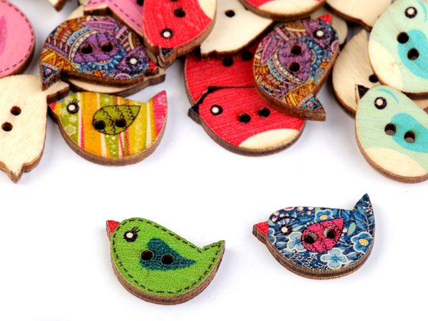 Drevené gombíky v tvare vtáčika sú rôzne zdobené, a preto pôsobia zaujímavo a tiež originálne. Môžete ich použiť v scrapbookingu a ozdobiť s nimi foto rámčeky, albumy, denníky, priania a pozvánky. Motív je jednostranný. Gombíky sú balené v sáčku. Neodporúčame ich prať.
