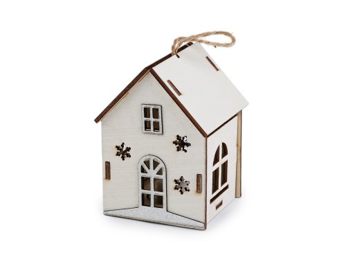 Drevený svietiaci domček rozžiari každý interiér. Má pútavo spracované detaily a svieti [teplým príjemným] svetlom. Vďaka pútku ho môžete zavesiť na stromček alebo na dekoračné vence. Batérie sú súčasťou balenia (3xLR1130).