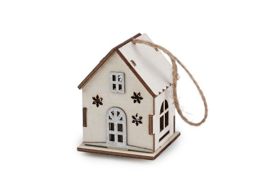 Drevený svietiaci domček má pútavo spracované výrezy. Teplé svetlo vytvára príjemnú atmosféru, ktorá zútulní každý interiér. Za jutové pútko ho môžete zavesiť na stromček, vence a pod.