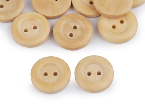 Gombík so zvýšeným okrajom je vyrobený z dreva. Môžete ho prišiť na svetre či kabátiky alebo použiť ako jeden z materiálov na scrapbooking.
