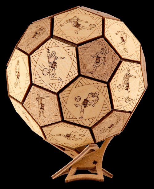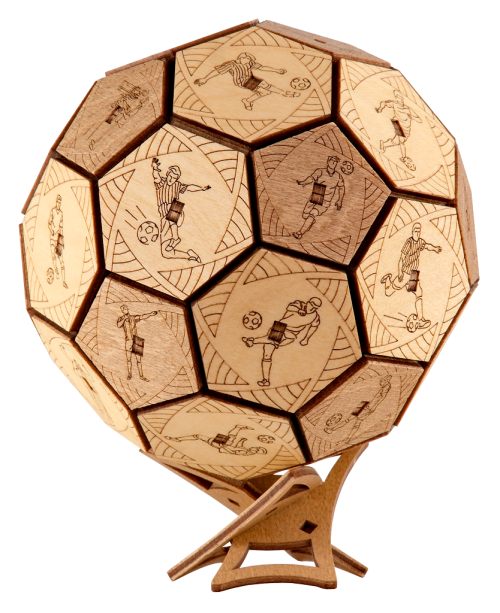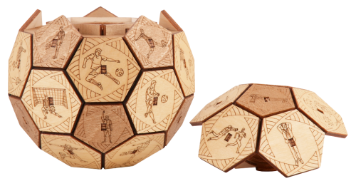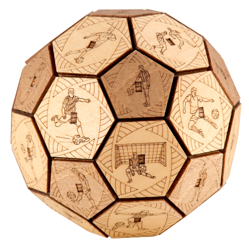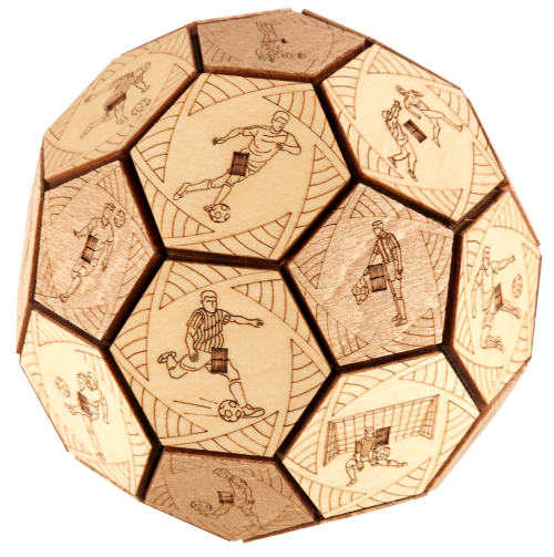 Už žiadny nudný baliaci papier! Emócie sú najlepší darček... Hľadáte vhodný darček pre futbalových nadšencov? Potom venujte tento darček s prekvapením a zažite strhujúcu zábavu vďaka Quest Ball skladačke. Chcete nájsť tajomstvo ukryté v tajnej vnútornej schránke? Zdieľajte s priateľmi zábavné okamihy a súťažte v odhaľovaní mechanizmu. Kto prvý odhalí tajomstvo? Preukážte svoju vynaliezavosť a vyriešte otvárací mechanizmus. Venujte darček s prekvapením, alebo skryte svoje vlastné tajomstvo vďaka tejto drevenej lopte s hlavolamom. Quest Ball v jedinečnom dizajne je dokonalý na uloženie vecí, ktoré sú vášmu srdcu drahé. Elegantný tvar ho premieňa na umelecké dielo, ktoré bude ozdobou interiéru nielen futbalových fanúšikov. Vyrobený bol šetrne k životnému prostrediu, zo 100% prírodných materiálov a všetky jeho časti boli presne vyrezané najlepšou laserovou technológiou. Spĺňa všetky európske bezpečnostné normy. Vek: 14+ Materiál: drevo