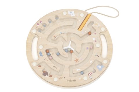 Drevená magnetická hra-labyrint. Pomocou magnetickej ceruzky deti posúvajú guličky v labyrinte. Rozmery balenia 26x26x4 cm. Vek 18m+
