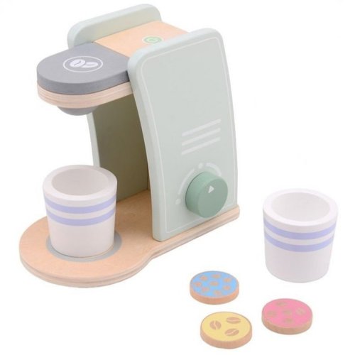 Drevený kávovar v krásnych, jemných, pastelových farbách.