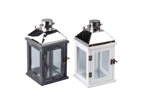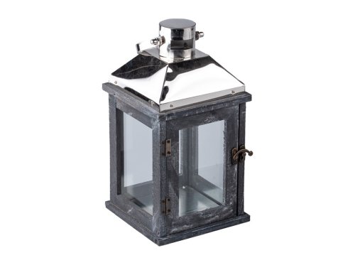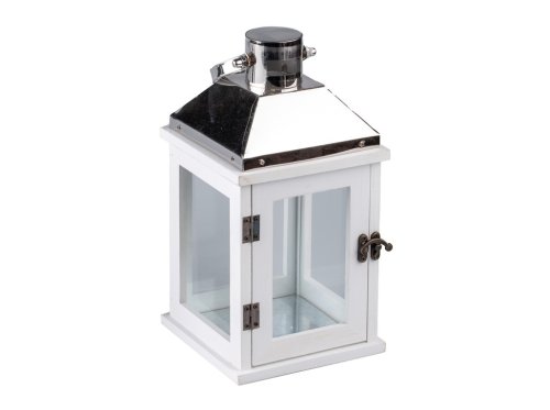 Táto štýlová lampáš kombinuje drevené telo v jemnej bielej a šedej farbe s elegantnou nerezovou strieškou, ktorá jej dodáva moderný nádych. Výška 29,3 cm z nej robí ideálnu dekoráciu na stôl, komodu aj podlahu. Vnútorný priestor je určený pre klasickú sviečku alebo LED osvetlenie. Hodí sa ako do interiéru, tak do krytých vonkajších priestorov. Skvele zapadne do škandinávskeho, provencie aj moderného štýlu.