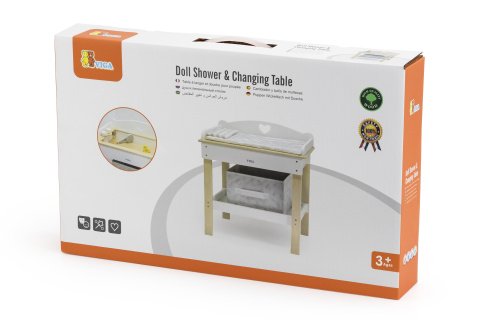 Drevený prebaľovací pult s vaničkou pre bábätko. Balenie obsahuje pultík, vaničku, sprchu, kačičku a látkový košík na drobnosti. Rozmery balenia cca 51x32x8,5 cm. Rozmery pultíka 50x30x54,5 cm. Vek 3+