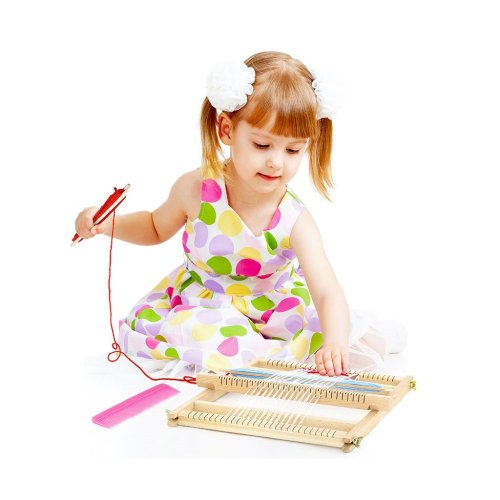 Je to kreatívna hračka, ktorá ovplyvňuje detskú fantáziu, podporuje rozvoj motoriky vášho dieťaťa – presnosť pohybov prstov a rúk. Hra s tkáčskym stavom poskytne zaujímavú činnosť, pri ktorej si každé batoľa môže vytvoriť vlastnú tkáčsku dielňu. sada obsahuje: rám pre tkáčsky stav, prídavný prvok, ktorý po otočení zdvíha priadzu určenú na tkanie, a hrebeň na pritlačenie utkaného úseku a dva člnky na prepletanie priadze. Stav je zabalený v estetickej, farebnej krabici.