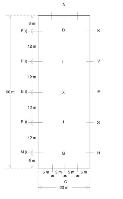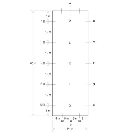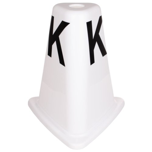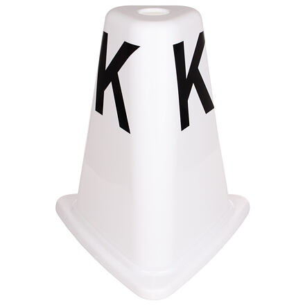 Sada 12-tich kužeľov s písmenami pre drezúrne obdĺžne k. Kužele sú vyrobené z ABS plastu, ktorý zaručuje vysokú odolnosť voči poveternostným vplyvom, UV žiareniu, dlhú životnosť a minimálne nároky na údržbu . Kužele je možné pre úsporu miesta a prepravu stohovať. Potlač je vyrobená z polepovej fólie. Sadu odporúčame k produktu Drezúrny obdĺžnik 20 x 60 m - sada: 12 ks - farba: biela - potlač: čierny, 16 x 14 cm - materiál: ABS plast - výška: 47 cm - dĺžka strany: 43 cm - hmotnosť: cca 0,8 kg - priemer horného otvoru: 5 cm 45 cm