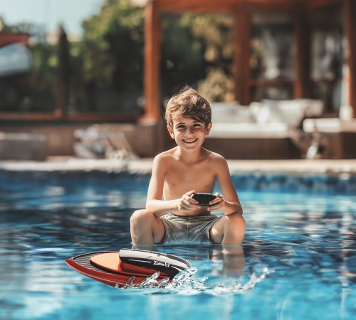 Moderná RC loď na diaľkové ovládanie, ktorá jazdí všetkými smermi. Pomocou tlačidla na zrýchlenie, dokáže na pár sekúnd vyvinúť väčšiu rýchlosť. Senzor na vodu zaručí spustenie iba pri ponorení do vody. Dosah ovládača 10-15 m. Dobíjanie na USB kábel. Doba dobíjania 25-30 minút. Doba jazdy 8-12 minút.