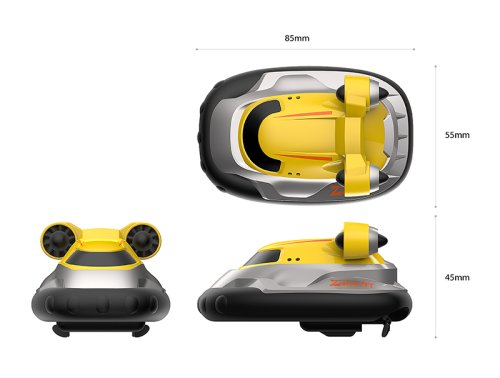 Moderné vznášadlo na diaľkové ovládanie, ktoré jazdí všetkými smermi. Pomocou tlačidla na zrýchlenie, dokáže na pár sekúnd vyvinúť väčšiu rýchlosť. Senzor na vodu zaručí spustenie iba pri ponorení do vody. Dosah ovládača 10-15 m. Dobíjanie na USB kábel. Doba dobíjania 25-30 minút. Doba jazdy 8-12 minút.