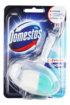 Domestos 3v1 tuhé WC bloky sú zložené z troch špeciálnych vrstiev a kombinujú tak tri účinky: