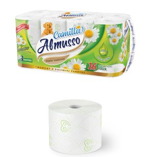 Papier toaletný CAMILLA 3vrstvový BÍ (16 ks) FSC. 16 roliek 3-vrstvový farba: biela Jemný biely trojvrstvový toaletný papier je vhodný na každodenné používanie.