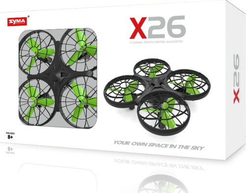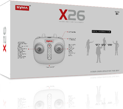Parametre: Li-pol batéria 3,7 V 380mAh Doba nabíjania: cca 90 minút Dosah: cca 70 metrov Doba letu: cca 6 minút Rozmery produktu: 13,1 x 13,1 x 4,45 cm Diaľkové ovládanie: 2,4 GHz (prevádzka na 4 ks) Balenie obsahuje: dron Syma X26, diaľkový ovládač 2,4 GHz, 4 vrtule, nabíjací kábel, Li-pol batéria 3,7 V 380mAh, návod.