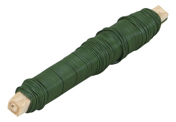 Drôt na aranžovanie kvetín a výrobu vencov, polakovaný zelený na drevenom kolíku, váha 100 g.