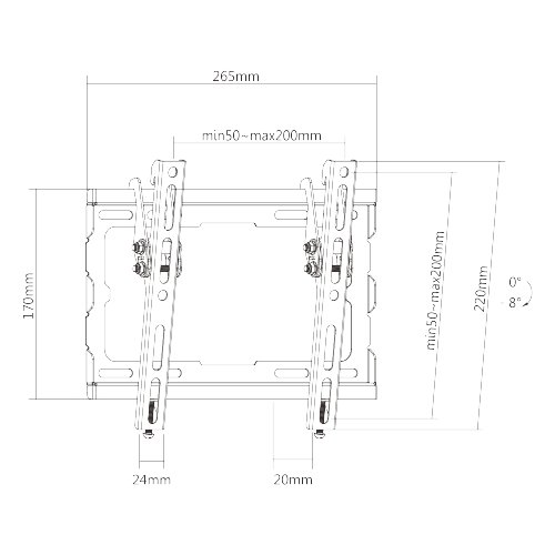 • Super tenký dizajn s čelnou plochou vo vzdialenosti iba 20mm od steny • Voľne sklopiteľná konštrukcia pre jednoduchú zmenu náklonu TV v uhle 0°~-8° • Otvorená architektúra zaisťuje lepší vetranie a ľahší prístup ku káblom • Pripevnenie TV k držiakom pomocou skrutiek • Univerzálny dizajn kompatibilný so širokou radou televízorov rôznych modelov a značiek • Optimalizovaná veľkosti balenia pre nižšie náklady na prepravu a skladovanie tj ideálny produkt pre e-commerce predajcu • Jednoduchá a rýchla montáž • Súčasťou dodávky je kompletné montážne príslušenstvo • Podporované rozstupy VESA: 50x50,75x75 ,100x100,100x150,150x100,100x200,200x100,150x150,200x200