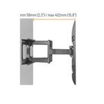 Držiak je určený pre jeden plochý televízor s uhlopriečkou od 37" do 80" . Odolné oceľové rameno unesie hmotnosť až 60 kg . Výsuvné rameno vám umožní nastavenie vzdialenosti od 58 do 402 mm, naklopenie hore a dole, rotáciu alebo natočenie do strán. Obrazovku tak môžete sledovať z rôznych miest.