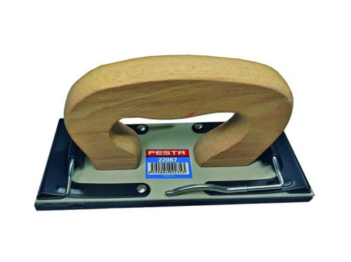 Profesionálny ručný držiak na brúsne materiály - plátna, papiere, mriežky. Rukoväť je vyrobená z kvalitného bukového dreva. Opracovanie aj tvar rúčky je prispôsobený optimálnemu sklonu ruky pri brúsení, aby dochádzalo k rovnomernému tlaku na celú brúsnu plochu pri minimálnej námahe. Rýchla a jednoduchá výmena brúsneho materiálu, silné uchytenie. Guma na pracovnej ploche umožňuje dobré prispôsobenie a kopírovanie brúsenej plochy.