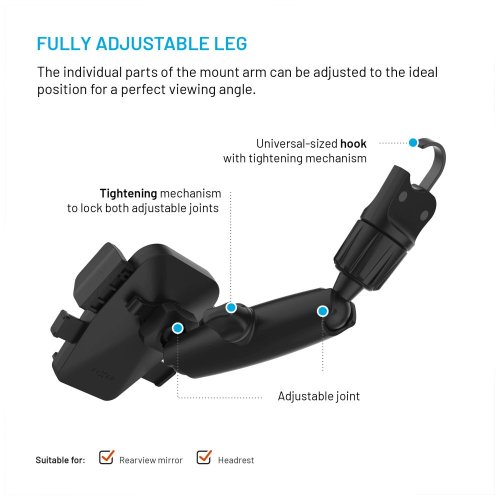 Zaistite si skvelý výhľad na obrazovku svojho mobilného telefónu, aj keď idete na dovolenku alebo na služobnú cestu. Univerzálny držiak do auta FIXED Iconiq Mirror upevníte pomocou háčika za spätné zrkadlo či opierku hlavy . Uťahovací mechanizmus, s nastaviteľným rozpätím od 1,3 do 3,3 cm, zaistí stabilitu aj pri väčších otrasoch počas jazdy.