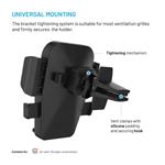 Zaistite si skvelý výhľad na obrazovku svojho mobilného telefónu, aj keď idete na dovolenku alebo na služobnú cestu. Univerzálny držiak do auta FIXED Iconiq Vent upevníte pomocou klieští so spätným háčikom za lamelu ventilácie vo vašom vozidle. Háčik bráni vo vypadnutí držiaka.