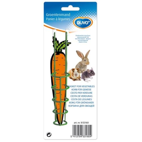Držiak na mrkvu alebo ďalšie maškrty s hákmi na zavesenie do klietky. Kŕmidlo je vyrobené z pevných drôtov a ošetrený kvalitnou nezávadnou farbou. Rozmer: výška 17cm, šírka 3,5cm, hĺbka 4cm