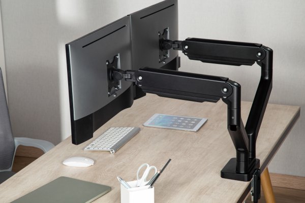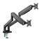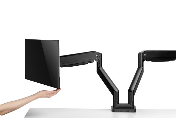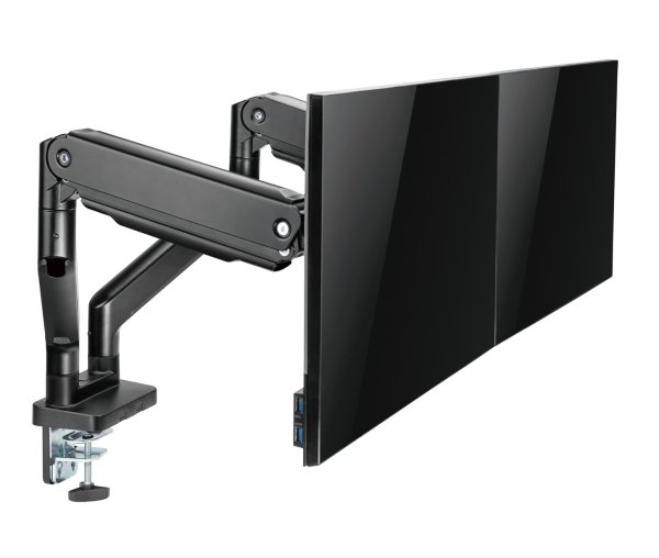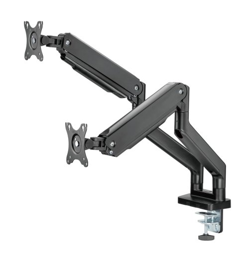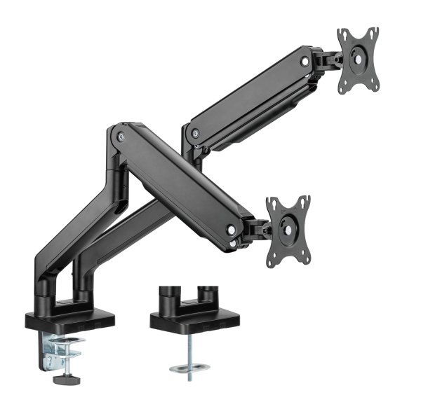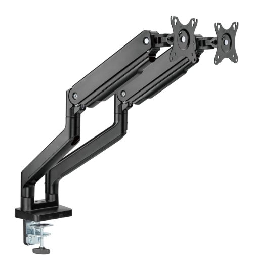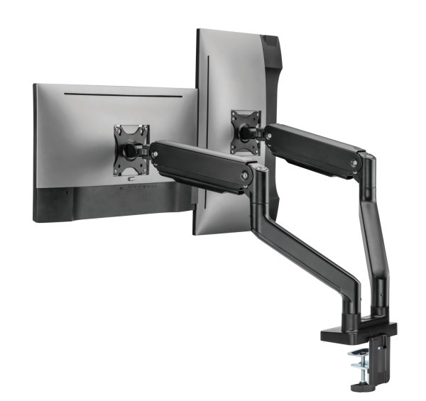 Vďaka odolnej oceľovej konštrukcii poskytuje stabilnú podporu pre dva monitory s uhlopriečkami 17" až 35" a hmotnosťou až 16 kg. Flexibilná konštrukcia na dostatočné nastavenie výšky a pozorovacích uhlov s možnosťou nastavenia orientácie monitora na výšku alebo na šírku. Súčasťou balenia sú priechodky a svorky na inštaláciu na takmer akúkoľvek pracovnú plochu. Odnímateľná doska VESA pre užívateľsky prívetivú inštaláciu.