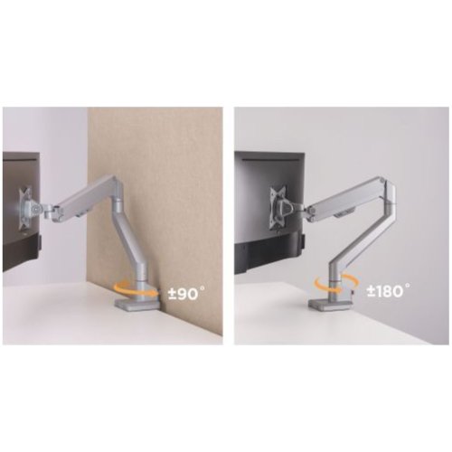 Vďaka odolnej oceľovej konštrukcii poskytuje stabilnú podporu pre jeden monitor s uhlopriečkou 17" až 32" a hmotnosťou až 9 kg. Flexibilná konštrukcia na dostatočné nastavenie výšky a pozorovacích uhlov s možnosťou nastavenia orientácie monitora na výšku alebo na šírku. Súčasťou balenia sú priechodky a svorky na inštaláciu na takmer akúkoľvek pracovnú plochu. Odnímateľná doska VESA pre užívateľsky prívetivú inštaláciu.