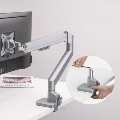 Hlavné vlastnosti: • Flexibilné nastavenie polohy: Držiak umožňuje ľahké nastavenie výšky, nastaviteľný náklon monitora v uhle +/- 45 °, vychýlenie do strán o 180 ° a otočenie monitora o 360 °, takže môžete ľahko nájsť optimálnu pozíciu pre pohodlné a ergonomické používanie. Odnímateľná doska VESA umožňuje jednoduchú inštaláciu monitora. • Vstavaný mechanizmus s plynovou vzperou umožňuje dokonalé nastavenie tuhosti ramien podľa hmotnosti monitorov. • Univerzálna kompatibilita: Tento stolný držiak je kompatibilný s väčšinou monitorov o veľkosti od 17" do 32" palcov as VESA štandardmi 75x75mm a 100x100mm. Nezáleží na tom, či používate LCD, LED alebo OLED monitor, držiak monitora Brateck poskytne bezpečné a stabilné uchytenie. • Vstavaný systém priechodiek pre uľahčenie organizácie vedenia káblov. • Odolná konštrukcia: Držiak je vyrobený z vysoko kvalitného materiálu, ktorý zaisťuje stabilitu a odolnosť. • Jednoduchá inštalácia: Držiak ich dodávam s kompletným montážnym príslušenstvom, vďaka ktorému je možné ho ľahko namontovať na stôl v priebehu niekoľkých minút. Jednoduchá montáž pomocou svorky na dosky s hrúbkou 10-50 mm alebo pomocou priechodky na dosky s hrúbkou 10-45 mm.