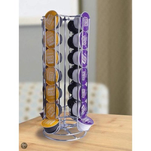 Tento štýlový držiak na kapsule je navrhnutý tak, aby udržoval rôzne kávové príchute starostlivo usporiadané. Môže pojať až 28 kávových kapsúl a má chrómovaný dizajn, ktorý ladí s každým kuchynským dekorom. Kompaktný a otáčací dizajn ho robí vhodným na umiestnenie na pracovnej doske alebo stole. Tu sú kľúčové špecifikácie:Farba: StriebornáMateriál: KovRozmery:Šírka: 15 cmDĺžka: 12 cmHmotnosť: 1 kgKompatibilný s: Kapsule Dolce GustoAk hľadáte alternatívu k pôvodnému držiaku na kapsule Dolce Gusto, môže to byť dobrá voľba. Celkovo ide o elegantný a funkčný doplnok pre milovníkov kávy!
