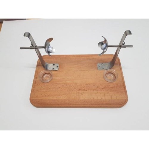 Držiak na koleno nerez na drevenej doske. Rozmery 40 x 26 cm.