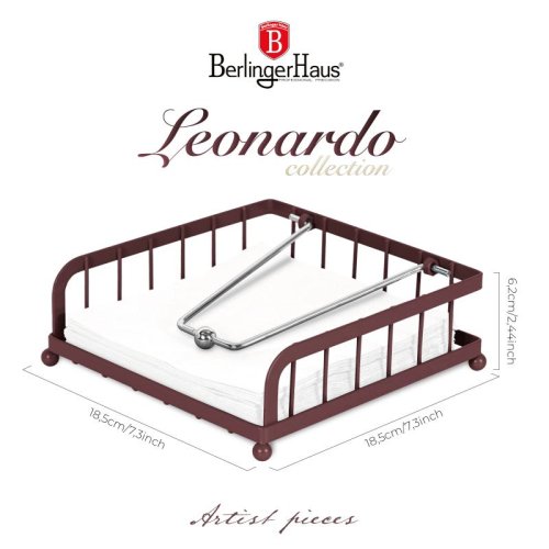 Držiak na obrúsky z kolekcie Leonardo je ideálny spoločník pre váš stôl, ktorý spája praktickosť s elegantným dizajnom v krásnej matnej bordovej farbe. data-start="299">Technické parametre a funkcie:</H3><P data-end="575" data-start="333">• Materiál: železo<BR data-end="354" data-start="351">• Rozmery: 18,5 x 18,5 x 6,2 cm<BR data-end= matná bordó<BR data-end="411" data-start="408">• Veľkokapacitné prevedenie<BR data-end="440" data-start="437">• Nie je nutná montáž<BR data-end="462" data-start="459">• Záťažová podpera zabraňuje odfúknutiu data-start="517">• Vyvýšené okrúhle nožičky zabraňujú namočeniu obrúskov</P><P data-end="665" data-start="577" data-is-only-node="" data-is-last-node="">Praktický a štýlový – perfektný doplnok pre každú domácnosť i posedenie<br> data-end="297" data-start="0">Držiak na obrúsky z kolekcie Leonardo je ideálny spoločník pre váš stôl, ktorý spája praktickosť s elegantným dizajnom v krásnej matnej bordovej farbe. záhrade.</P><H3 data-end="332" data-start="299">Technické parametre a funkcie:</H3><P data-end="575" data-start="333">• Materiál: železo<BR data-end="354" data-start="351">• Rozmery: 18,5 cm data-end="388" data-start="385">• Farba: matná bordová<BR data-end="411" data-start="408">• Veľkokapacitné prevedenie<BR data-end="440" data-start="437">• Nie je nutná montáž<BR data-end="462" data- odfúknutie obrúskov vetrom<BR data-end="520" data-start="517">• Vyvýšené okrúhle nožičky zabraňujú namočeniu obrúskov</P><P data-end="665" data-start="577" data-is-only-node="" data-is-lastno posedenie pod holým nebom!</P>
