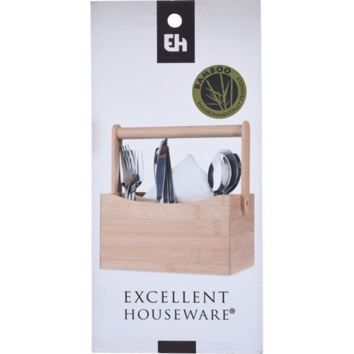 prenosný držiak na príbory s otočnou rukoväťou- vynikajú pre ľahké skladovanie príborov a servírovanie napr. na záhrade - 4 oddelené priehradky pre jednoduchú orientáciu - otočná rukoväť pre ľahké prenášanie - materiál: bambusové drevo s MDF dnom - rozmery: 23,5 x 17 x 12,5 cm - farba: prírodné bambusové drevo