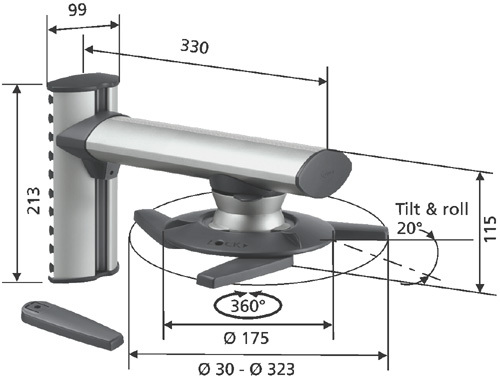 nosnosť 10 kg natáčania 360 ° materiál kov + plastové kryty farba kombinácia strieborné s čiernou