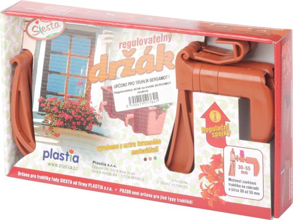 Plastový regulovateľný držiak na truhlík Bergamot je vyrobený z extra tvrdeného materiálu. Možnosť zavesenia truhlíka na zábradlie.