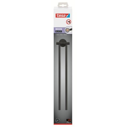 samolepiaca tesa® Moon Black držiak na uterák dvojramenný technológia tesa® Power.Kit - univerzálne montážne riešenie pomocou lepidla drží na glazovaných dlaždiciach, kove, prírodnom kameni, mramore, betóne, …