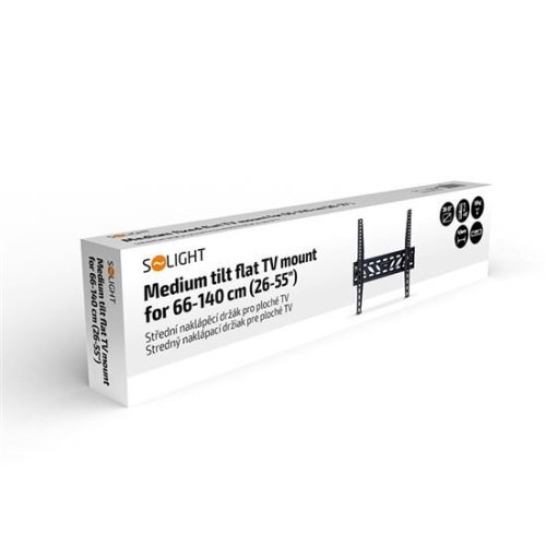 Univerzálny naklápací držiak je ideálny pre všetky ploché TV s uhlopriečkou 66–140 cm (26“–55“). Bezpečne televíziu uchytí a umožní jej naklopenie až o -12 ° pre optimálny pozorovací uhol. Vďaka pevnej konštrukcii s nosnosťou až 50 kg stabilne upevníte zariadenie na stenu.