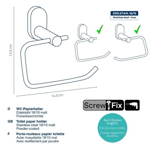 Držiak toaletného papiera Alessio nerez 18/10 čierny 14,5x7,5x12,5cm KL-22747