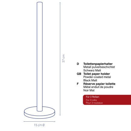 Kov čierny matne práškovo lakovaný, 15 cm, 37 cm v, pre 3 rolky