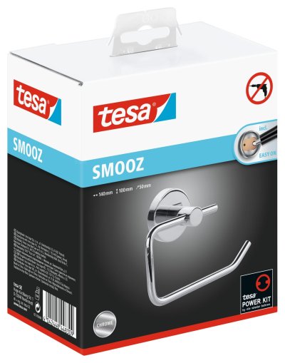 • Držiak na toaletný papier s vekom s patentovanou technológiou tesa® Power.Kit (univerzálne montážne riešenie pomocou lepidla)